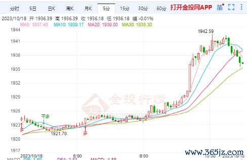 周三(10月18日)本交易日伦敦金日内持续上涨,今日开盘报1922.70美元/盎司,最高触及1942.59美元/盎司,最低触及1922.49美元/盎司,截止发稿金价报1936.77美元/盎司,涨幅0.74%。